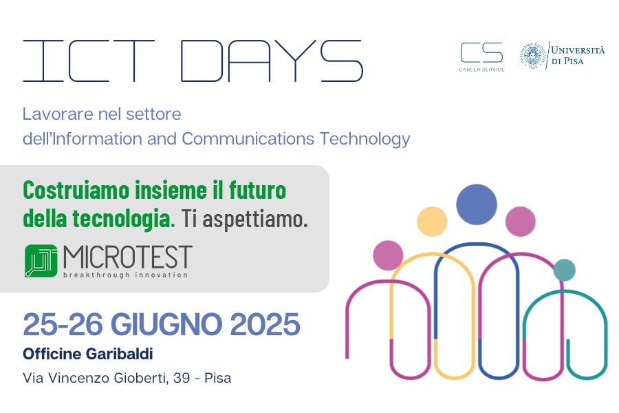 Microtest Group sarà tra le aziende presenti agli ICT Days dell’Università di Pisa, il 25 e 26 giugno, in due giornate dedicate alle opportunità di lavoro nel settore dell’Information and Communications Technology.